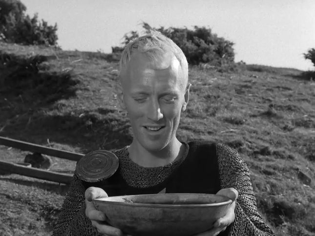 A film vége felé látható egy jelenet, ahol a lovag és útitársai szamócát és tejet fogyasztanak a domboldalon. Ezt Bergman gyakran az eucharisztia (úrvacsora) profán, mégis szent változataként ábrázolja. A lovag itt nem a dogmákban, hanem az emberi közösségben és a pillanatnyi békében találja meg azt az értelmet, amit Istentől hiába várt.